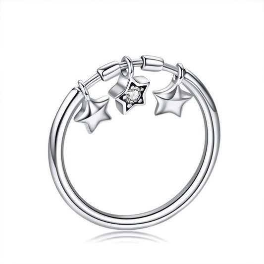 PAHALA 925 Strling Silver Bright Galaxy Sparkling Star Crystals Finger Weeding Party Ring