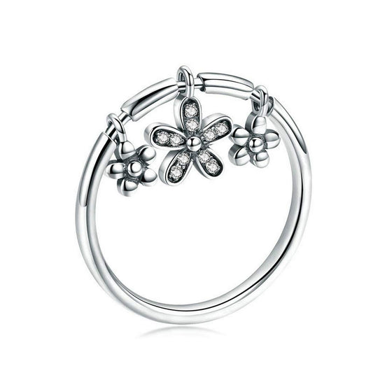 PAHALA 925 Strling Silver Daisy Flower Dangle Finger Weeding Party Ring