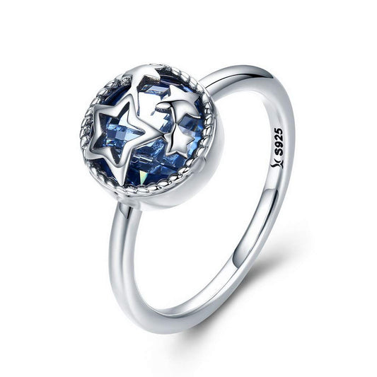 PAHALA 925 Strling Silver Star Blue Crystal Finger Weeding Party Ring