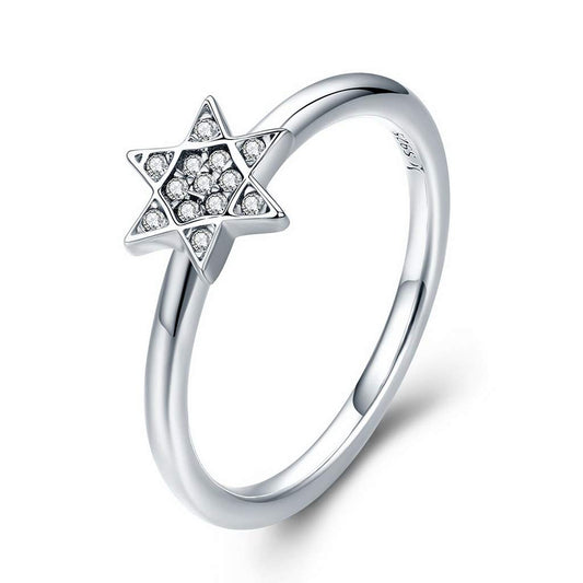 PAHALA 925 Strling Silver Sparkling Hexagram Star with Crystals Finger Weeding Party Ring