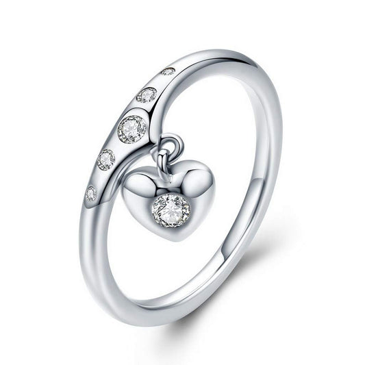 PAHALA 925 Strling Silver Romantic Sweet Heart Crystal Finger Weeding Party Ring