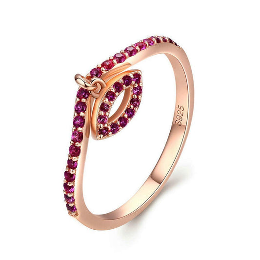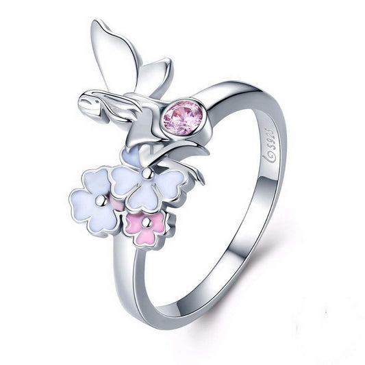 PAHALA 925 Strling Silver Flower Fairy Pink Crystals Finger Weeding Party Ring