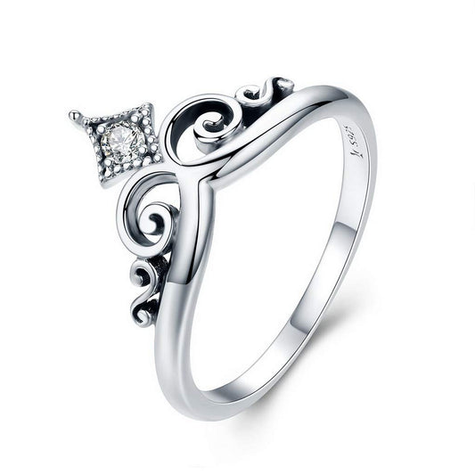 PAHALA 925 Strling Silver Princess Crown with Crystals Finger Weeding Party Ring