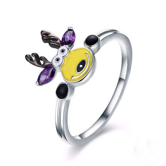 PAHALA 925 Strling Silver Elk Deer Purple Enamel Finger Weeding Party Ring