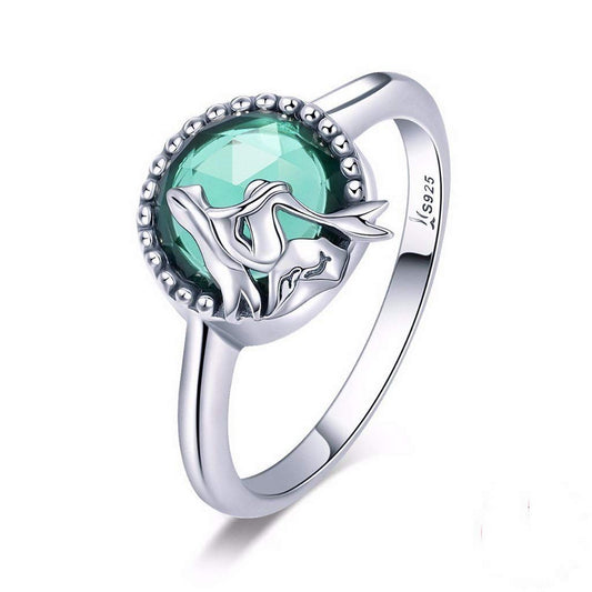 PAHALA 925 Strling Silver Romantic Story Green Crystal Finger Weeding Party Ring