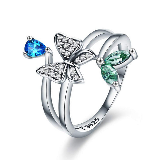 PAHALA 925 Strling Silver Butterfly Spring Crystals Finger Weeding Party Ring