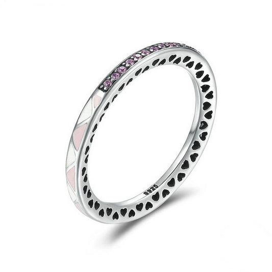 PAHALA 925 Sterling Silver Romance Heart Enamel with Pink Crystals Galaxy Vintage Wedding Engagement Band Ring