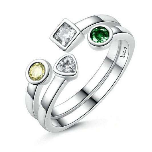PAHALA 925 Sterling Silver Colourful Crystals Double Layer Vintage Wedding Engagement Band Ring