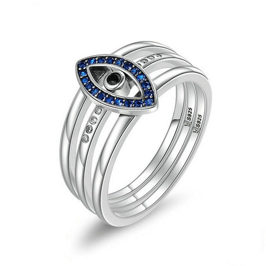 PAHALA 925 Sterling Silver Blue Eye with Crystals Vintage Wedding Engagement Band Ring