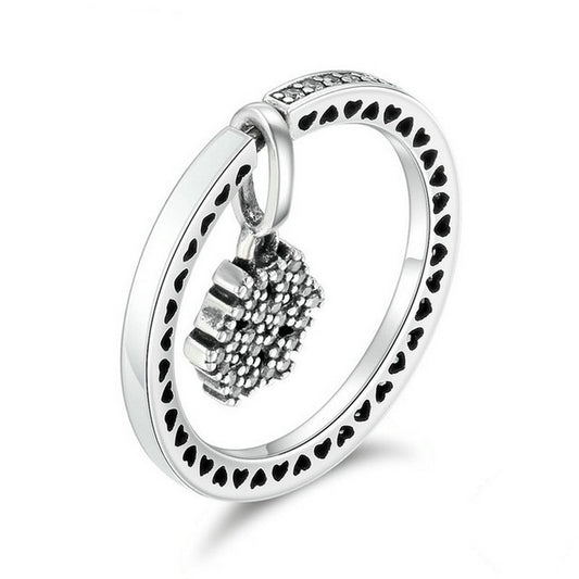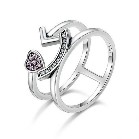 PAHALA 925 Sterling Silver Exquisite Heart with Crystals Double Layer Weeding Party Band Ring