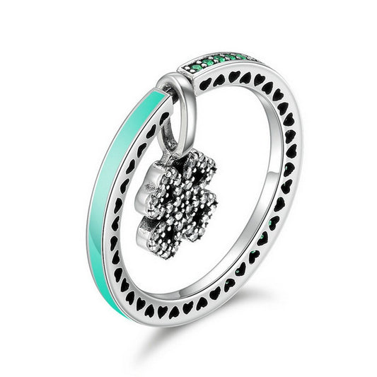 PAHALA 925 Sterling Silver Heart Flower with Crystals Light Green Enamel Vintage Wedding Engagement Band Ring