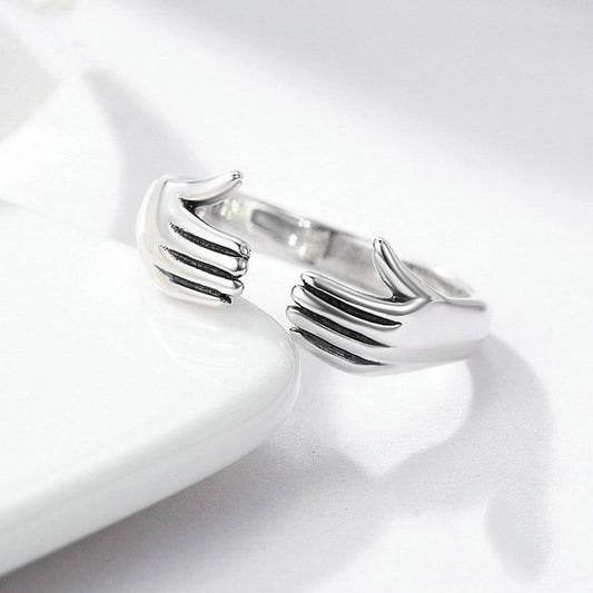 PAHALA 925 Sterling Silver Double Layer Hug Weeding Party Band Ring