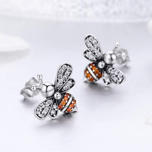 PAHALA 925 Sterling Silver Cute Bee Story Crystal Stud Earrings