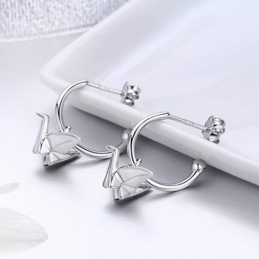 PAHALA 925 Sterling Silver Romantic Crane Dangle Stud Earrings