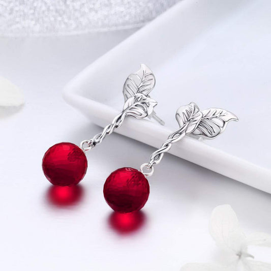 PAHALA 925 Sterling Silver Summer Fruit Red Crystal Drop Earrings