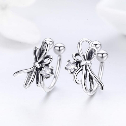 PAHALA 925 Sterling Silver Bowknot Dazzling Crystals Clip Earrings