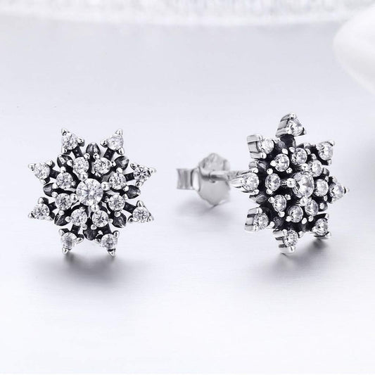 PAHALA 925 Sterling Silver Romantic Snowflake Luminous Crystal Stud Earrings