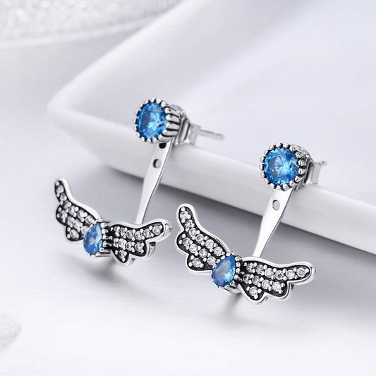 PAHALA 925 Sterling Silver Cute Feather Fairy Wings Crystal Stud Earrings