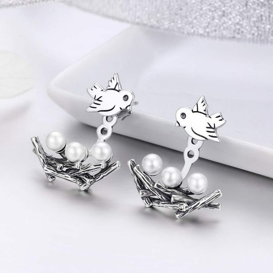 PAHALA 925 Sterling Silver Bird Swallow Nest Stud Earrings