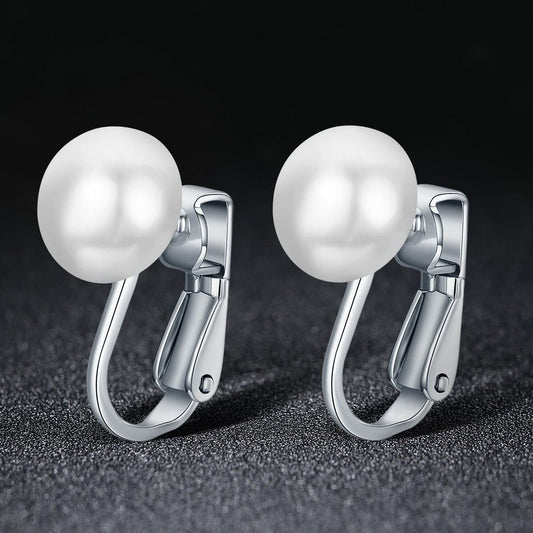 PAHALA 925 Sterling Silver Vintage Silver Glittering Pearl Small Clip Earrings