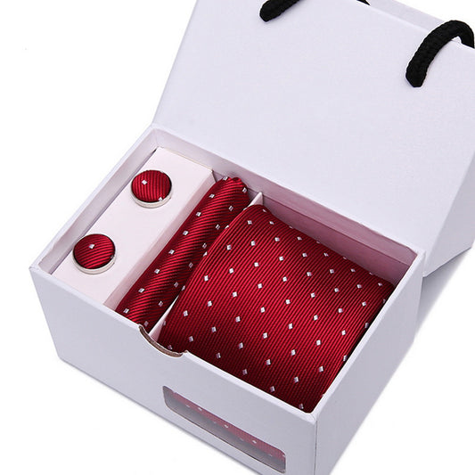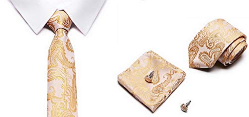 PAHALA Mens Silk Jacquard Woven Necktie Cufflinks Pocket Square Set Box