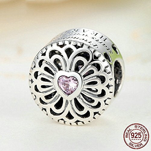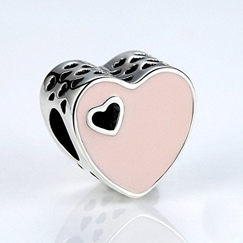PAHALA 925 Strling Silver Romantic Heart with Pink Enamel Charms Fit Bracelets Necklace