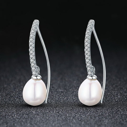 PAHALA 925 Sterling Silver Vintage Freshwater Pearl Hanging Crystals Drop Earrings