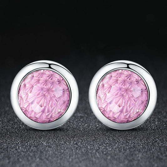 PAHALA 925 Sterling Silver Round Pink Sparkling With Pink Crystal Stud Earrings