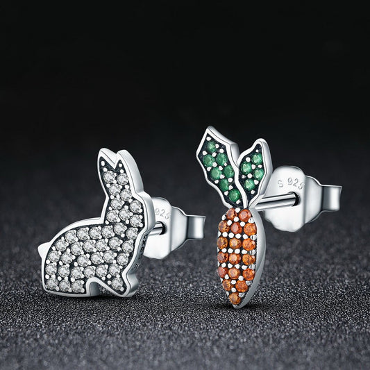 PAHALA 925 Sterling Silver Cute Rabbit Carrot With Crystals Stud Earrings