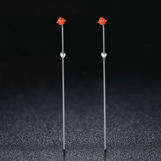 PAHALA 925 Sterling Silver Deep Love Heart Red Crystal Long Tassel Earrings