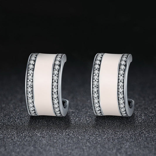 PAHALA 925 Sterling Silver Exquisite Round Luminous With Crystals Stud Earrings