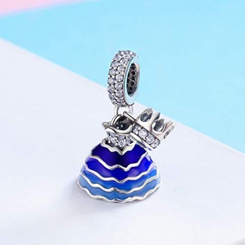 PAHALA 925 Strling Silver Blue Enamel Princess Dress with Crystals Charms Beads