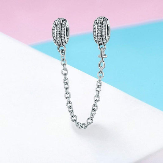 PAHALA 925 Sterling Silver Round Chain with Crystals Safety Chain Charm