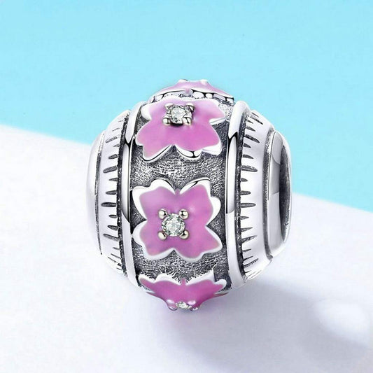 PAHALA 925 Strling Silver Love Clover Flower Pink Enamel Charm Bead