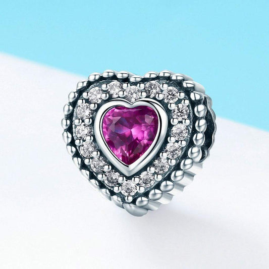 PAHALA 925 Strling Silver Romantic Heart Luminous Shape with Crystals Charm Bead