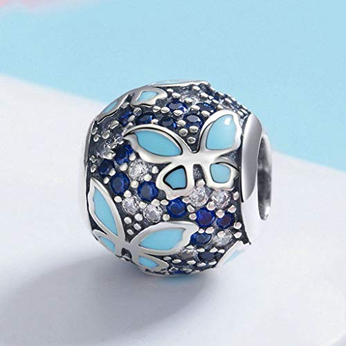 PAHALA 925 Strling Silver Blue Emanel Butterfly with Crystals Heart Pendant Charms Beads