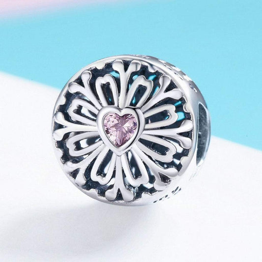 PAHALA 925 Strling Silver Flower of Friendship Pink Crystals Charm