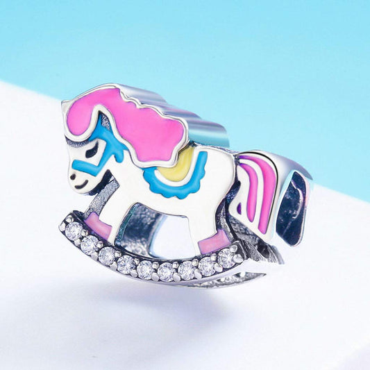 PAHALA 925 Strling Silver Vintage Rocking Horse with Color Enamel Crystals Charm