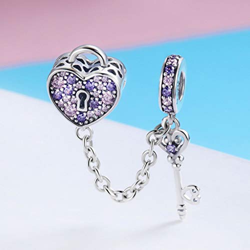 PAHALA 925 Strling Silver Crystals Key of Heart Love Lock Safety Chain Pendant Charms Beads