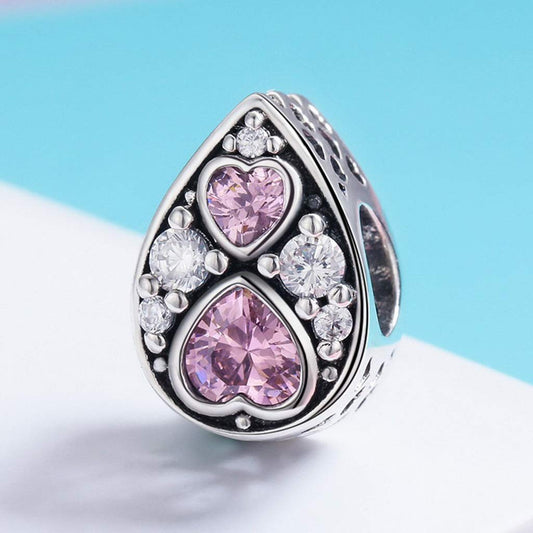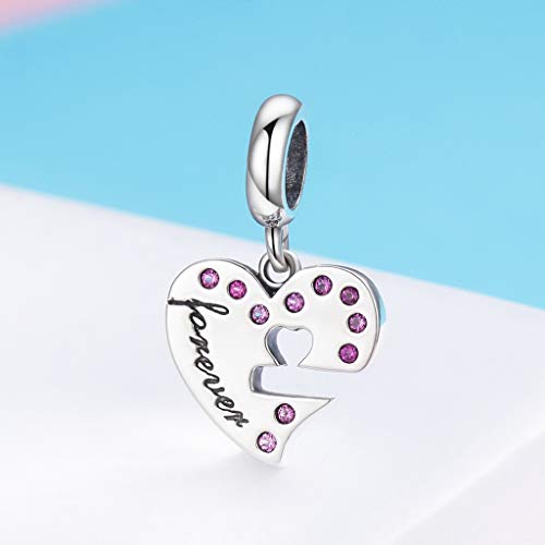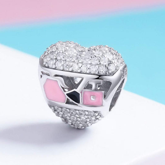 PAHALA 925 Strling Silver Romantic Dazzling Heart Shape Crystals Charms