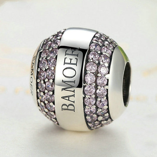 PAHALA 925 Strling Silver Pink Crystals Charms Pendant Fit Bracelets Necklace