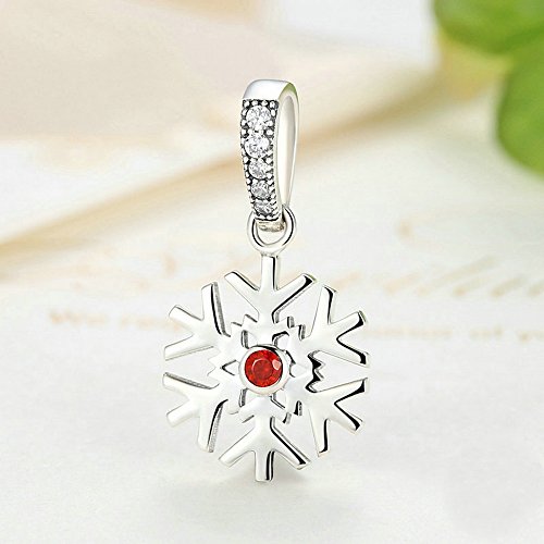 PAHALA 925 Strling Silver Snowfalke with Red Crystals Charms Pendant Fit Bracelets Necklace