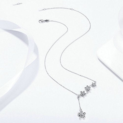 PAHALA 925 Sterling Silver Daisy Flower Tassel with Crysatls Clear CZ Pendant Necklace