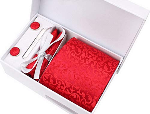 PAHALA Mens Fashion Necktie Cufflinks Tie Bar Pocket Square Set Box