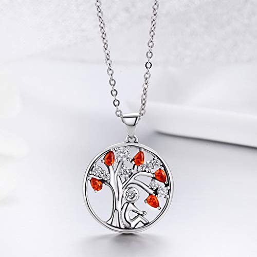 PAHALA 925 Sterling Silver Red Crystal Tree Pendant Necklace