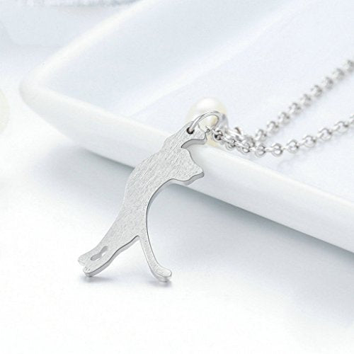 PAHALA 925 Sterling Silver Lovely Cat Clear CZ Pendant Necklace