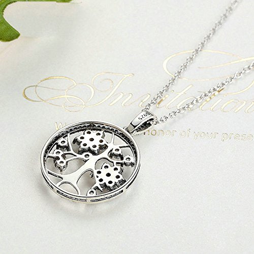 PAHALA 925 Sterling Silver Tree with Crystals Pendant Necklace