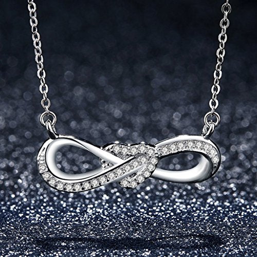 PAHALA 925 Sterling Silver Infinity Love Round with Crystal Clear CZ Pendant Necklace