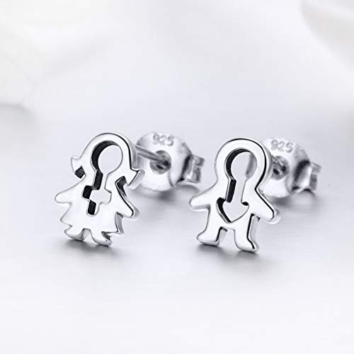 PAHALA 925 Sterling Silver Boy And Girl Stud Earrings