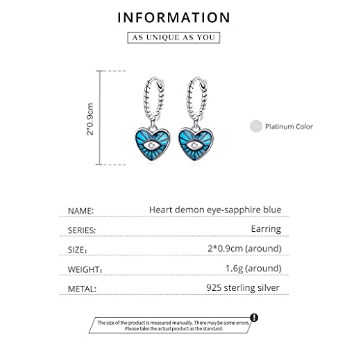 PAHALA 925 Sterling Silver Enamel Colorful Heart Demon Eye Sapphire Hoop Drop Earrings